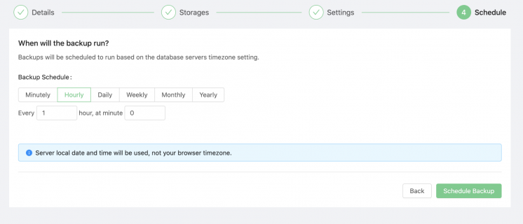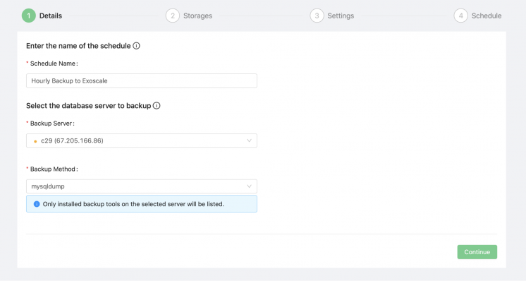 6. Once the agent is installed you can configure your backup Schedule. Enter the details for the backup schedule.